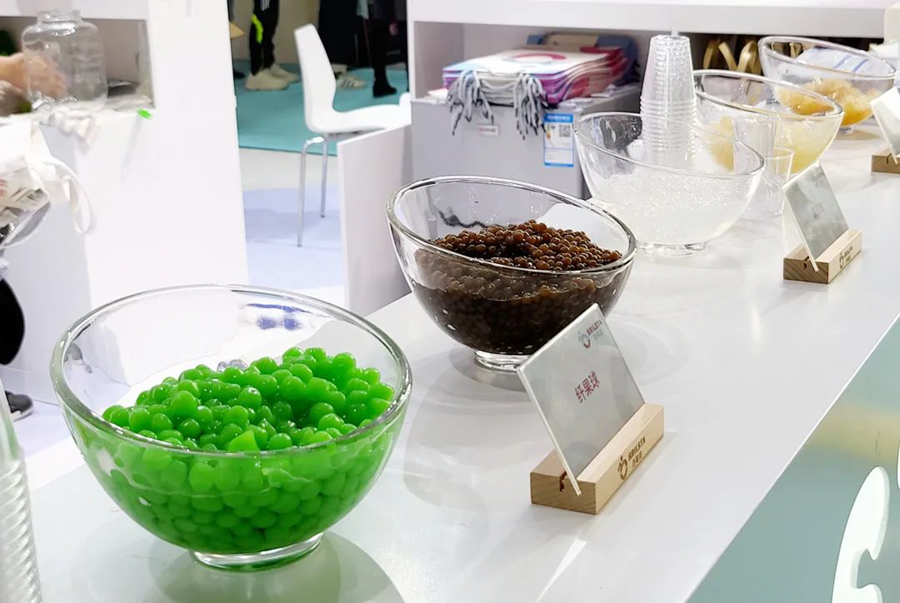 本次主推胶原蛋白肽、玻尿酸、西米波波晶球,富有概念性的茶饮小料近些年得到越来越多人的关注,而百瑞达这几款添加不同元素的晶球则吸引来无数目光。